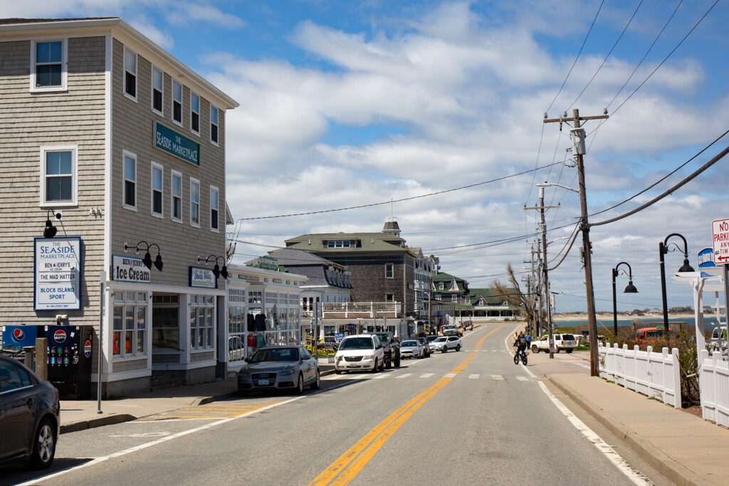 Kleine Geschäfte, Cafés und Galerien säumen die Straßen von New Shoreham, der einzigen Ortschaft der Insel. Die Architektur verströmt den Charme vergangener Jahrhunderte: weiß gestrichene Holzhäuser mit Schindeldächern, schmiedeeiserne Laternen und Fensterläden, die dank der salzigen Meeresbrise ihre Farbe verloren haben.