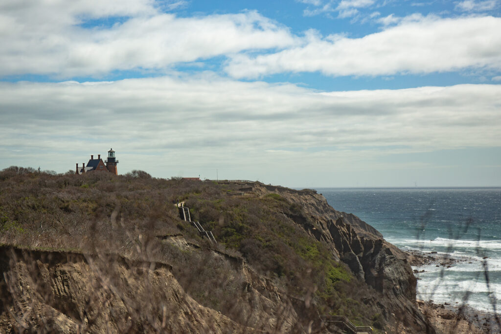 Ihre rund zweistündige Tour startet in New Shoreham, wo auch die Fähre anlegt. Ausgerüstet mit Helm und Wasserflasche geht es Richtung Süden zum Mohegan Bluffs und dem South East Light. Die Mohegan Bluffs sind steile, bis zu 50 Meter hohe Klippen, deren Name von einem Kampf zwischen dem Stamm der Mohegan und den einheimischen Niantic-Indianern (auch: Manissean) um die Herrschaft über Block Island im 16. Jahrhundert. Die Niantic besiegten die Mohegan-Angreifer, indem sie sie von den Klippen stürzten. Der 1875 im gotischen Stil erbaute Leuchtturm mit seinem grünen Laterne ist ein malerisches Fotomotiv – bei dem keine Kamera in der Tasche bleibt. Er ist auch allem deshalb berühmt, weil er 1993 mehrere Meter von der Klippe weiter ins Land versetzt werden musste, um ihn vor dem Absturz zu retten.