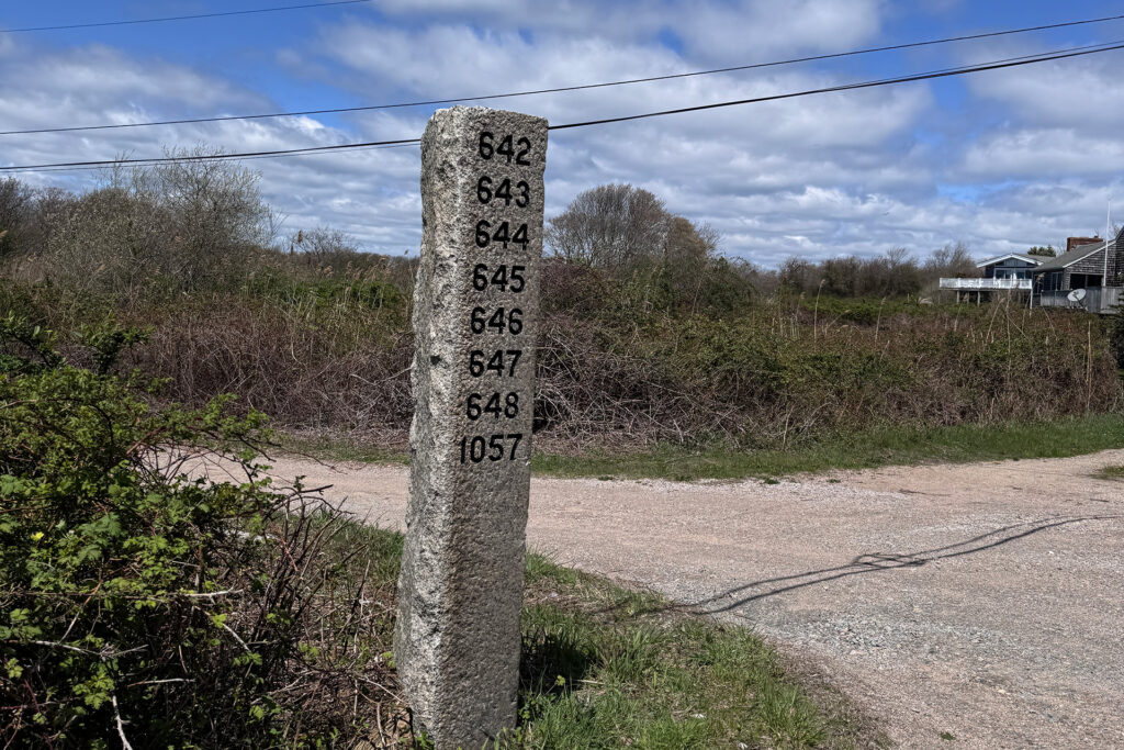 Beim Stopp am Fresh Pond rät uns Zena, nach Glass Foats – also mundgeblasenen Glaskugeln – Ausschau zu halten. Diese wurden von einem Künstler aus Wakefield, RI, auf der gesamten Insel versteckt und sind Teil einer Aktion des Büros für Tourismus. Jedes Jahr werden 500 plus der Jahreszahl des jeweilig aktuellen Jahres – also 2025: 525 – dieser Glaskugeln in Bäumen, zwischen Ästen, im Gebüsch oder an anderen seltsamen Orten ausgesetzt. Jede ist mit einem Glasstempel versehen, auf dem die Nummer und die Umrisse der Insel zu erkennen sind.