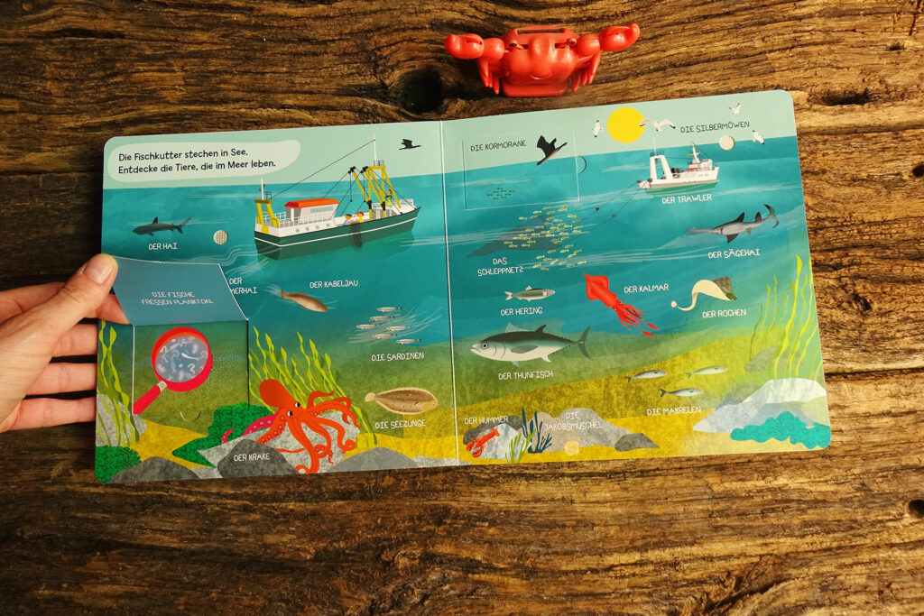 Was uns besonders gefallen hat: Die Geräusche wirken angenehm ruhig und erstaunlich realistisch. Keine schrillen Effekte, kein hektisches Gedudel – stattdessen Wellenrauschen, Tierlaute und maritime Klänge, die sofort Bilder im Kopf entstehen lassen. Unsere Kinder haben die Sounds immer wieder ausgelöst, während wir Erwachsenen automatisch angefangen haben zu erzählen: von Urlauben am Meer, von Schiffen, von Tieren, die man sonst nur aus dem Fernsehen kennt.